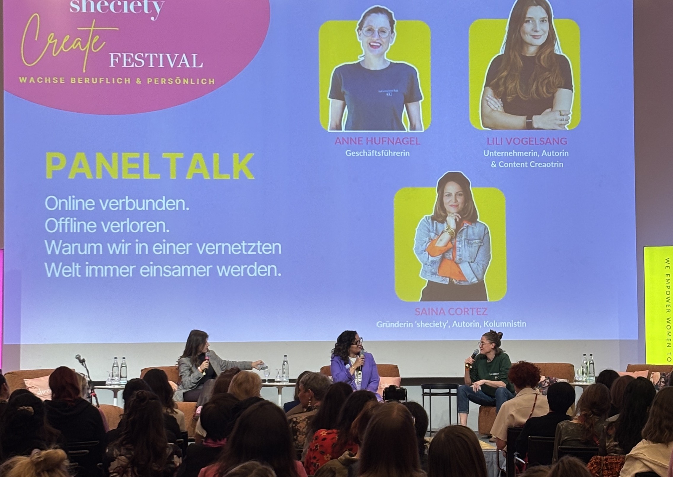 Aufgrund des Vorangegangenen ist deutlich geworden, wie wichtig Formate wie das Panel beim Create Festival sind. Unser Dank gilt deshalb Saina Cortez und dem gesamten sheciety-Team für die Einladung und dafür, dem Thema Einsamkeit Raum, Aufmerksamkeit und Relevanz zu geben.